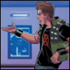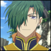 Description: Jae-ha smirks, with the bangs of his green hair swept over his right eye